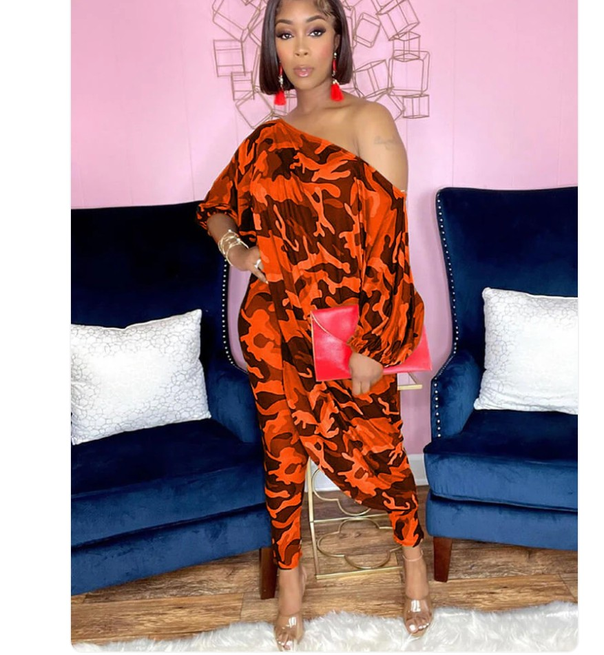 Polyester/cotton two piece long sleeve pant set. This set is in orange just in time to be a fall favorite for the holidays.